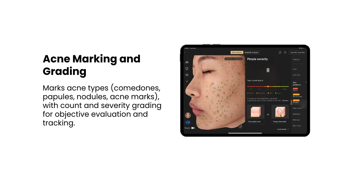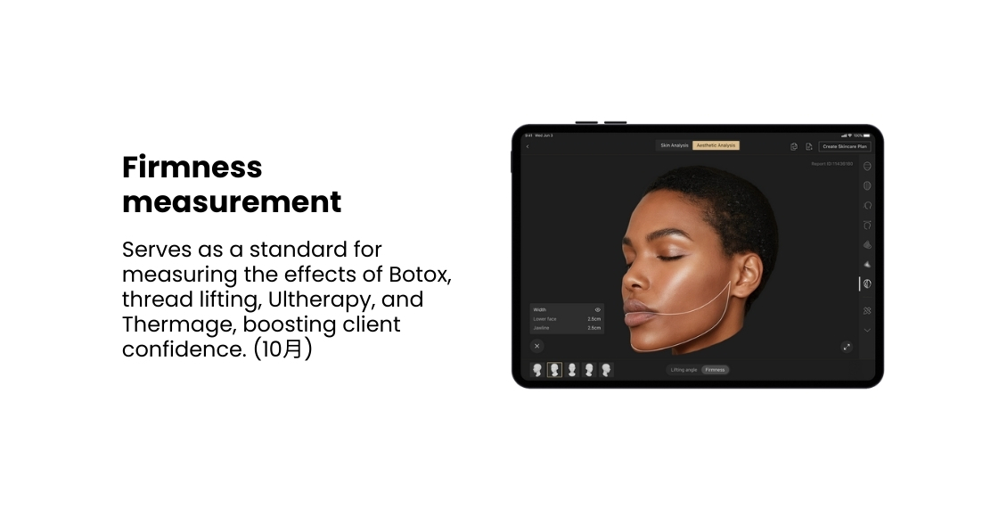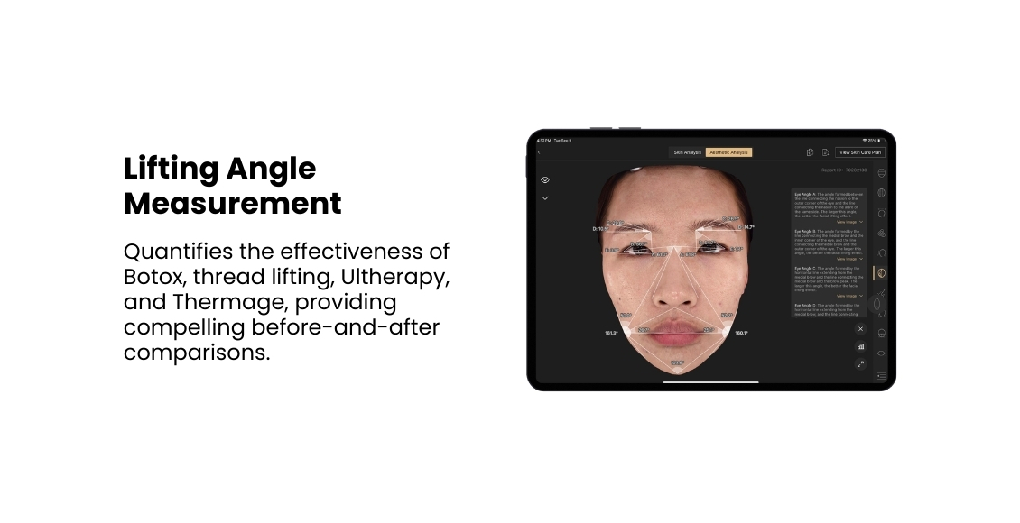 Delivering precise, data-driven insights across skin concerns, volume, angles, and proportions, it turns subjective assessments into objective clinical clarity — seamlessly integrating into clinic workflows to elevate accuracy and efficiency.