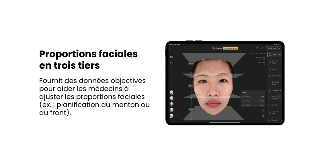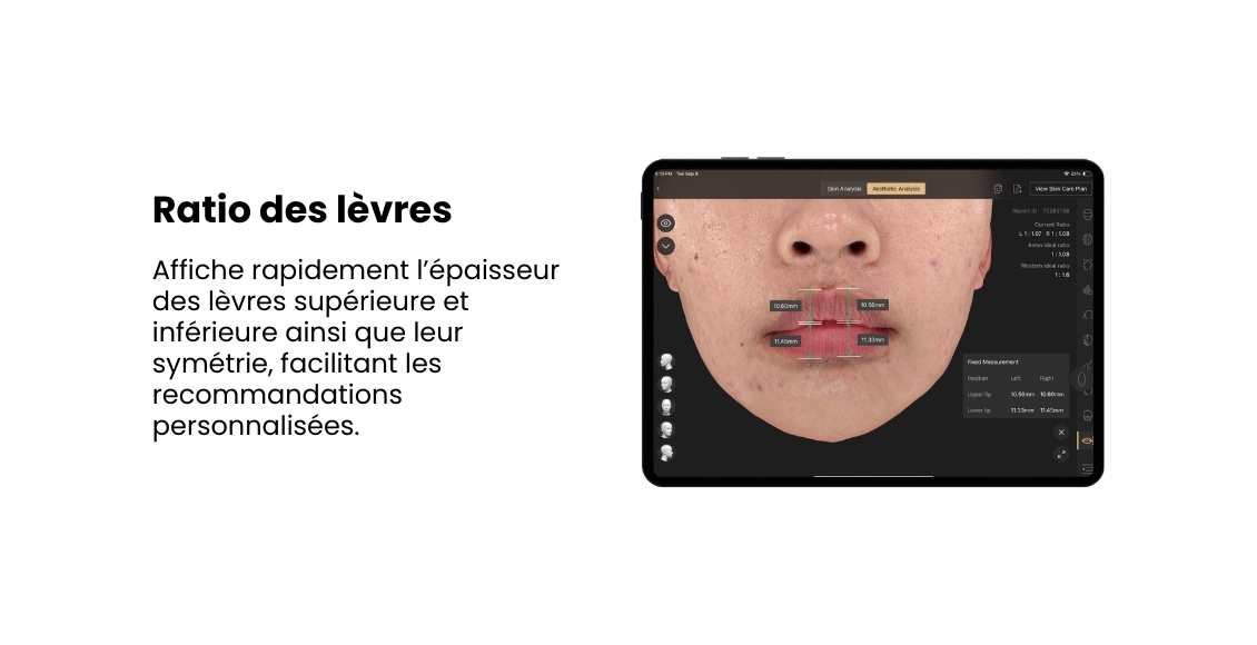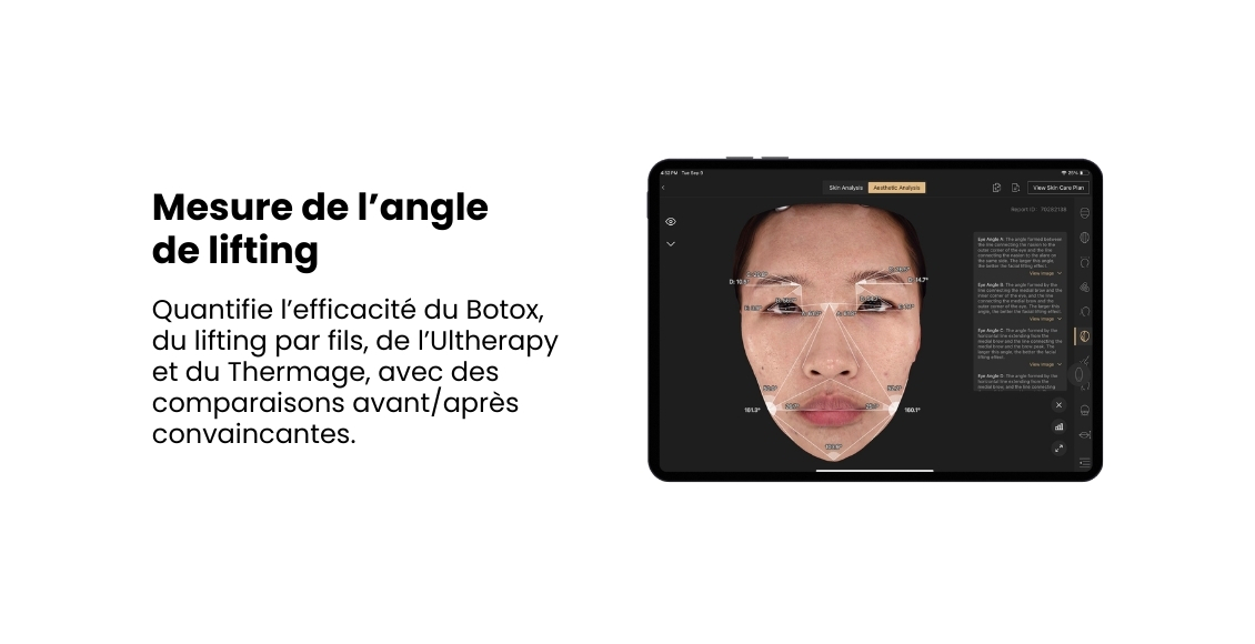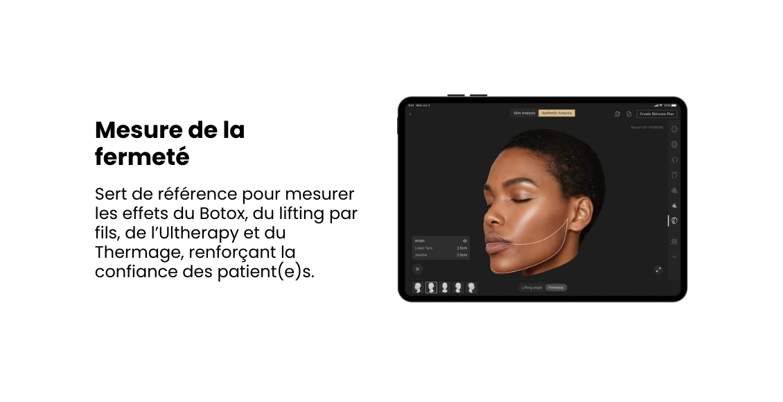 En fournissant des données précises et objectives sur les préoccupations cutanées, les volumes, les angles et les proportions, elle convertit les évaluations subjectives en une clarté clinique mesurable — tout en s’intégrant harmonieusement aux flux de travail des cliniques pour améliorer la précision et l’efficacité.